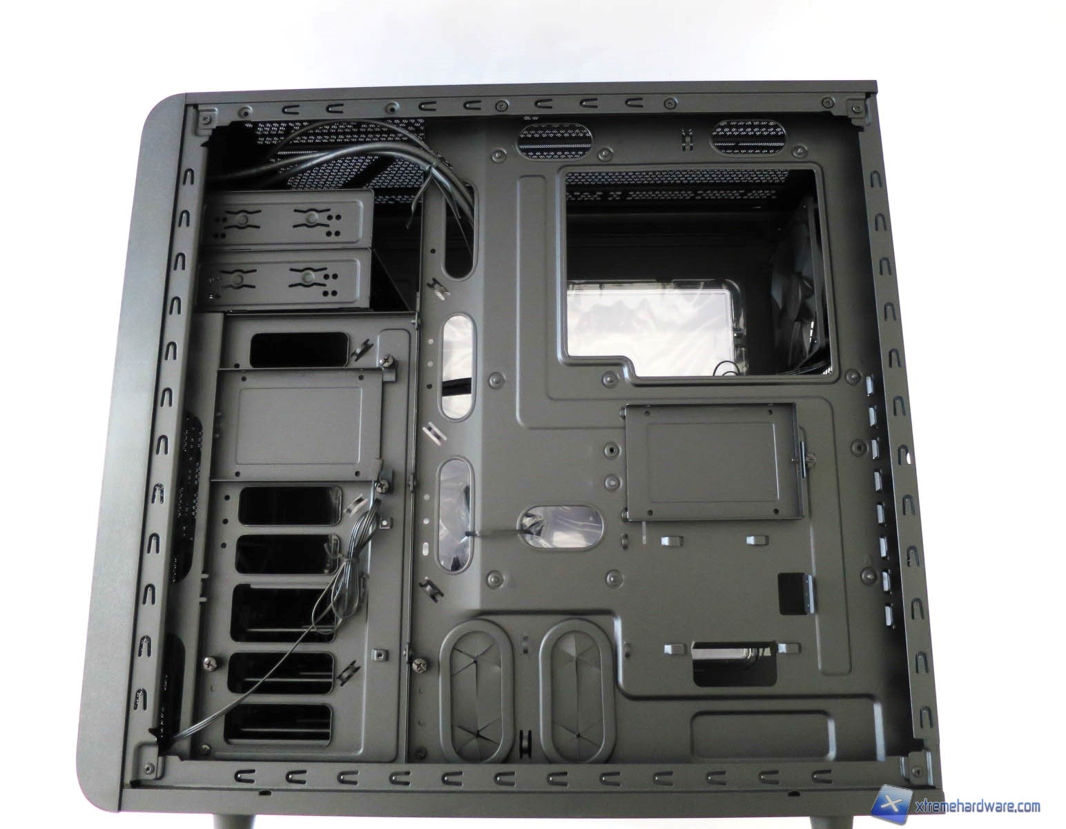 Come notiamo, una volta rimossi il cage ed i supporti per le unità da 5,25 pollici, aumenta notevolmente volume interno del case. Avremo dunque molto più spazio per integrazioni a liquido o configurazioni ad aria.