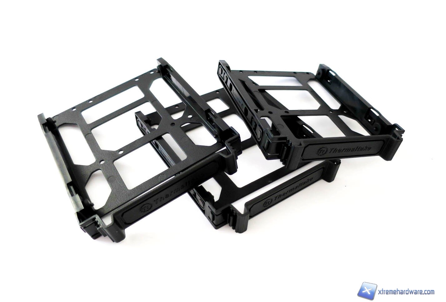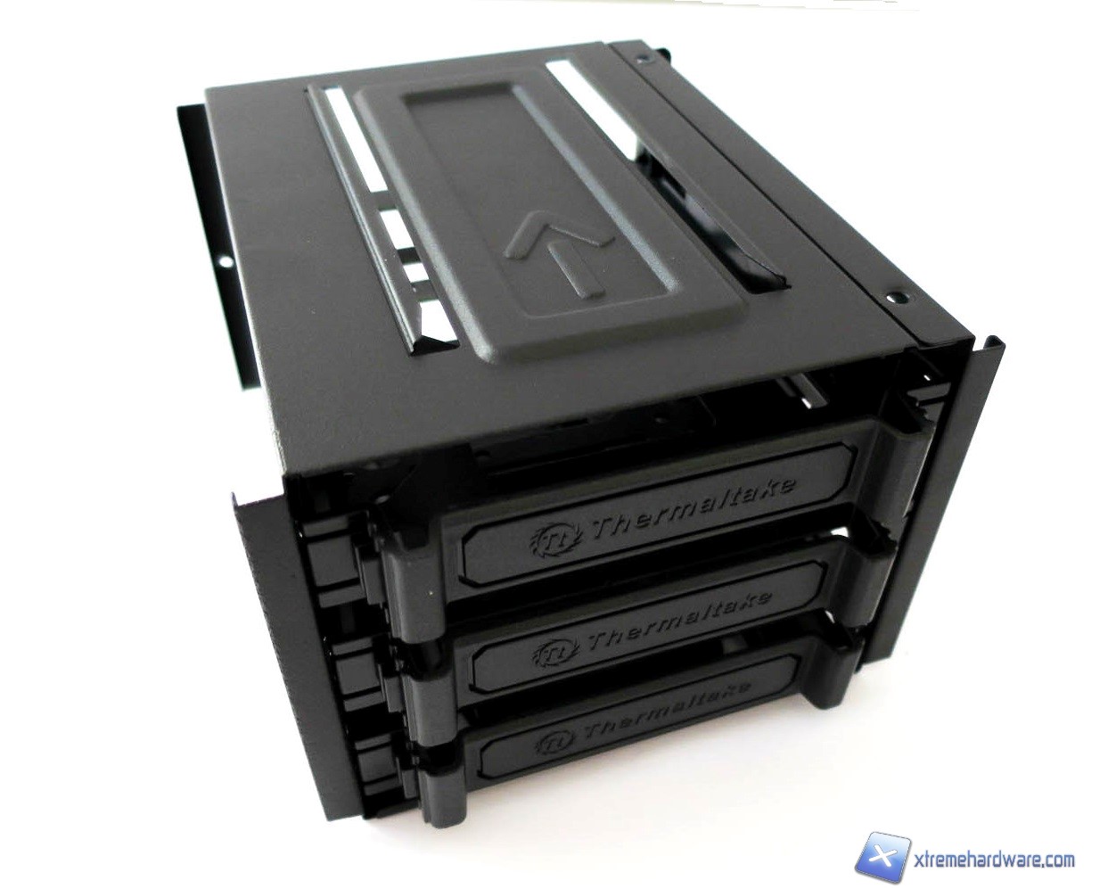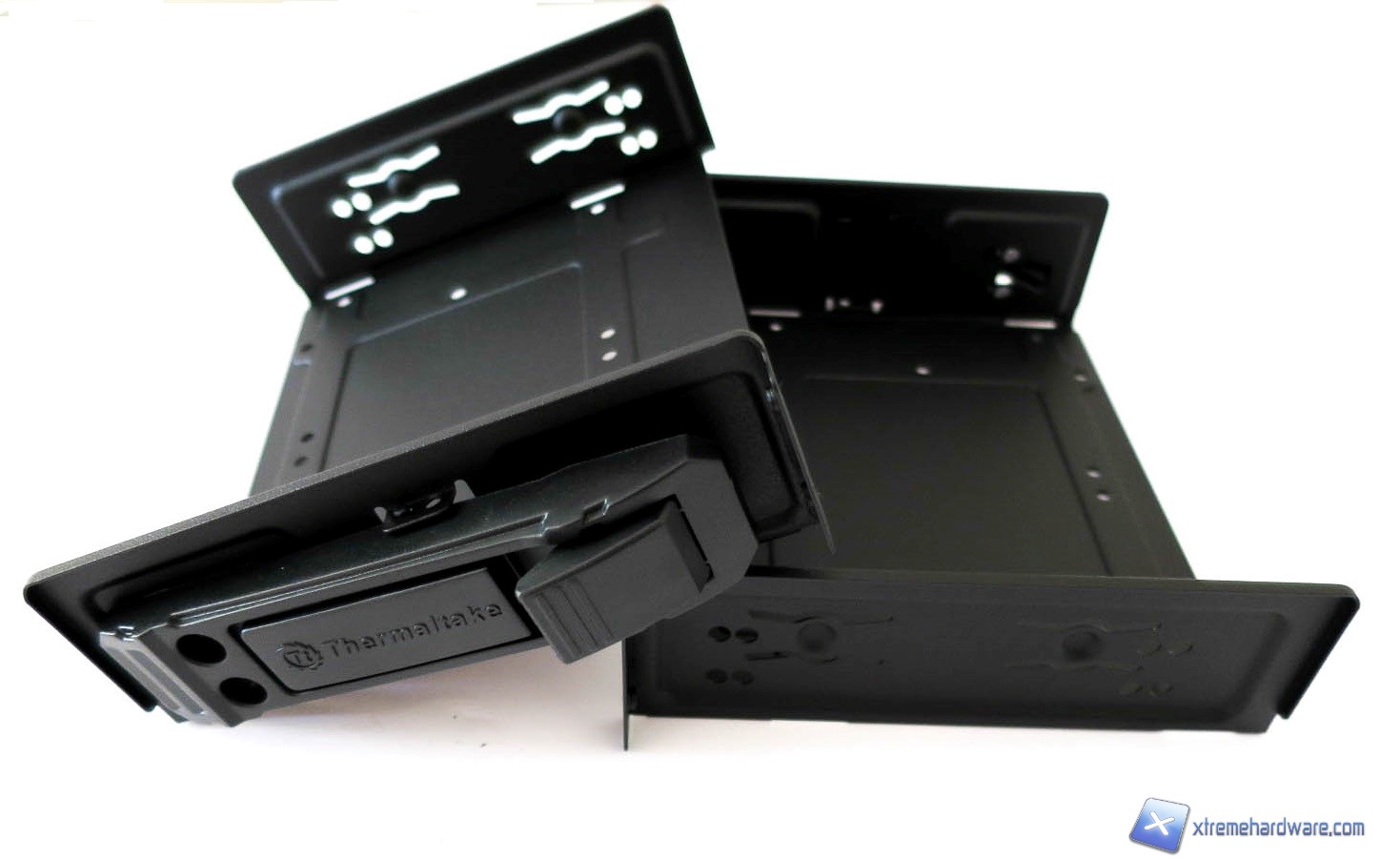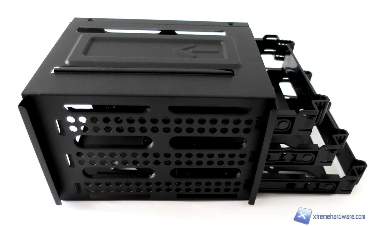 Ora, come vi abbiamo detto, avremo la possibilità con il Core V31 di spostare i cage degli Hard Disk in due posizioni (superiore ed inferiore) come per gli stessi supporti/tray per gli SSD o di rimuoverli completamente. Per le unità ottiche, invece, avremo solo la possibilità di rimuoverli completamente per agevolare un’eventuale integrazione di un impianto a liquido. Tali soluzioni non sono comuni ad altri case e rendono senza dubbio il Core V31 molto versatile ed espandibile Grazie a tale peculiarità, potremo anche massimizzare il flusso d’aria delle ventole che installeremo all’interno del case. Ora, analizzando i cage, notiamo come quelli per gli Hard Disk siano nient’altro che delle slitte in plastica ospitate in una gabbia di metallo. In tale cage è possibile installare fino ad un massimo di tre Hard Disk da 3,5 pollici, più che sufficienti per la maggior parte degli utenti ed i relativi scopi di storage. Le slitte come sempre hanno il classico sistema a clip che ne permette la rapidità e facilità di installazione o rimozione. Ci basterà premere le due estremità sporgenti delle slitte per estrarle dal cage ed installare gli Hard Disk. A differenza di altre slitte queste non hanno fori per l’installazione di SSD o Hard Disk da 2,5 pollici quindi per l’installazione di questi drive dovremo usufruire degli unici due supporti in metallo presenti nel retro del case. Anche per i supporti sempre in metallo delle unità ottiche abbiamo un sistema di installazione Tool-Less che agevola la fase fi installazione. Tutte le slitte ed i fermi in plastica per le unità ottiche sono serigrafati con il nome del brand.