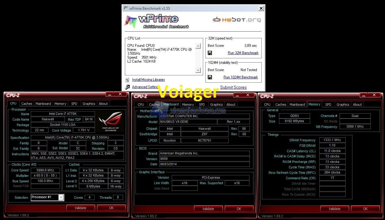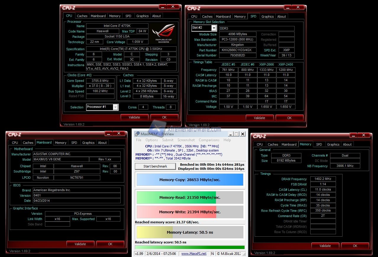 Utilizzando il Cascade siamo riusciti a raggiungere frequenze ben diverse, a puro scopo dimostrativo. La Maximus VII Gene è in grado di regalare parecchie soddisfazioni in questo ambito, grazie anche alla capacità di tirare le memorie. Il programma MaxMEM è abbastanza fedele nel dato rappresentato in quanto non influito dalla cache del processore.