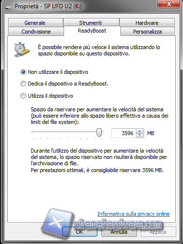 L'unità è predisposta per essere utlizzata in modalità Ready Boost, la quale non è altro che una è una tecnologia di disk caching presentata inizialmente per il sistema operativo Microsoft Windows Vista e disponibile nei sistemi operativi successivi come Windows 7. Lo scopo è rendere i computer che hanno installato tali sistemi operativi più veloci e reattivi usando appunto memorie di tipo flash memory come penne USB, SD card, CompactFlash ed altri tipi.